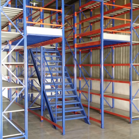 此類系統(tǒng),通常利用中型擱板式貨架或重型擱板式貨架作為主體和樓面板的支撐(根據(jù)單元貨架的總載重量來決定選用何種貨架),樓面板通常選用冷軋型鋼樓板、花紋鋼樓板或鋼格柵樓板。此類系統(tǒng)在汽車零部件領(lǐng)域、汽車4S店、輕工、電子等行業(yè)有較多應(yīng)用。