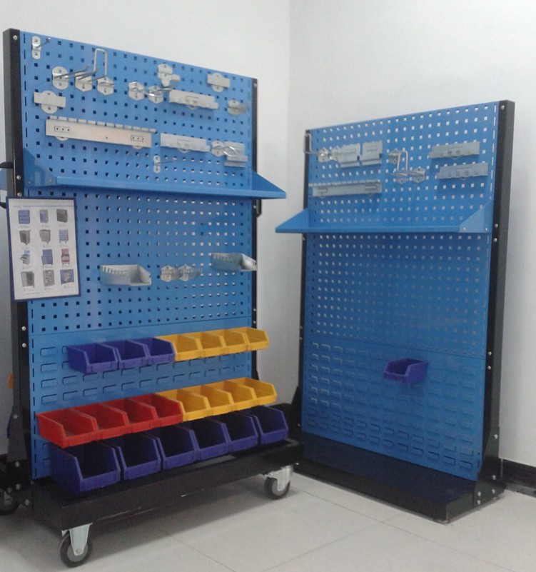 物料整理架是由方孔掛板、百頁(yè)掛板、背掛零件盒、棚板、各類掛鉤和底座等組成,廣泛應(yīng)用于車間