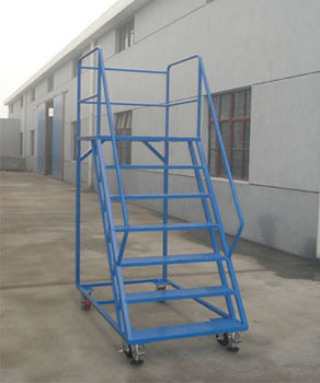 處堆取物品等動(dòng)作。另外,登高車配有腳輪,可供使用者推拉轉(zhuǎn)向移動(dòng),方便快捷。其中有前腳輪上配備有輪剎,剎住后,登高車固定不可移動(dòng),使用者可放心的登高操作。