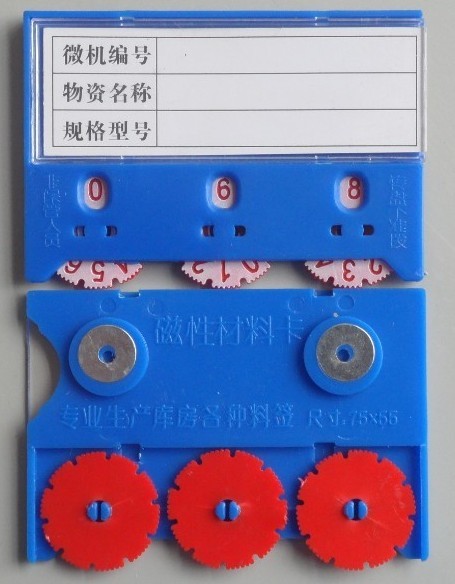磁性標(biāo)簽卡(磁性材料卡、材料卡、材料磁性卡、貨架標(biāo)牌、磁性標(biāo)牌、磁性標(biāo)簽槽)適用于商場、文檔室、圖書館、倉庫等場所內(nèi),固定或吸附在文檔架、書架、貨架上標(biāo)示該處物品信息的材料卡 磁性材料卡材質(zhì)ABS工程塑料,堅(jiān)固耐用,背面裝有強(qiáng)磁材料或不粘膠,也可以使用開設(shè)在底扳上的掛壁式安裝孔固定,便于材料卡在不同材質(zhì)架上安裝。解決目前在工廠、商場等場所內(nèi)存儲大量物資所使用的該類倉儲卡信息不全或使用不便,而提供一種可隨時(shí)按需、靈活、方便更改材料數(shù)量,且結(jié)構(gòu)簡單、合理的材料卡,提高倉庫管理水平,以適應(yīng)企業(yè)的認(rèn)證、升級。經(jīng)上千家企事業(yè)單位、部隊(duì)使用,效果良好