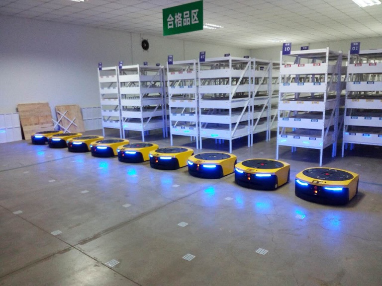倉儲(chǔ)機(jī)器人是一款現(xiàn)代智能倉庫搬運(yùn)機(jī)器人,它的速度可以達(dá)到80米/分。機(jī)器人采用慣性二維碼導(dǎo)航,不僅小巧靈活、而且精度高速度快;具有自動(dòng)檢測障礙物,規(guī)劃路線、姿態(tài)保持等強(qiáng)大功能集于一身的本領(lǐng)。機(jī)器人能根據(jù)訂單,將貨物所在的貨架從巨大的倉庫存儲(chǔ)區(qū)搬運(yùn)至員工處理區(qū),大大提高處理效率。采用機(jī)器人能夠提高近一半的倉儲(chǔ)處理能力。